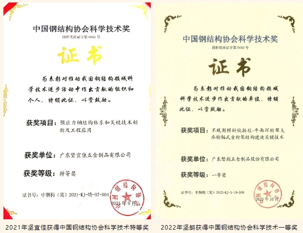 快猫网址及子公司相继荣获中国钢结构协会多项大奖: